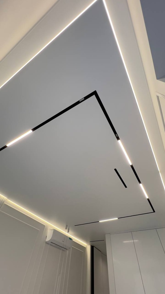 Матовый потолок с контурной подсветкой в спальне 14 кв.м. (Скидка за объём от 50 кв.м.)