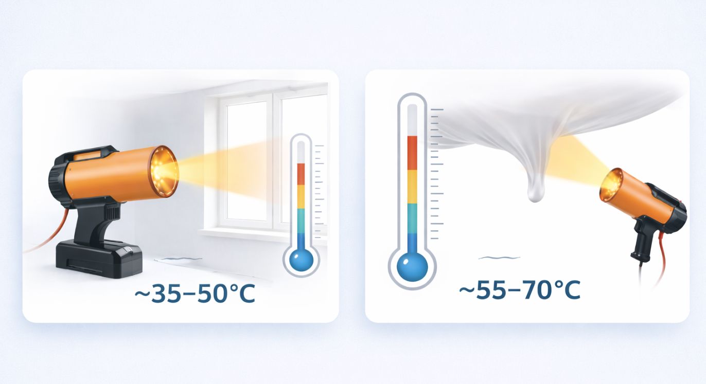- Важнее дистанция до пушки (1,5–3 м) и скорость прогрева, чем «максимум градусов»: избегайте локального перегрева.